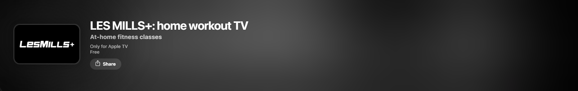 The app is called “LES MILLS+: home workout TV” on Apple TV devices